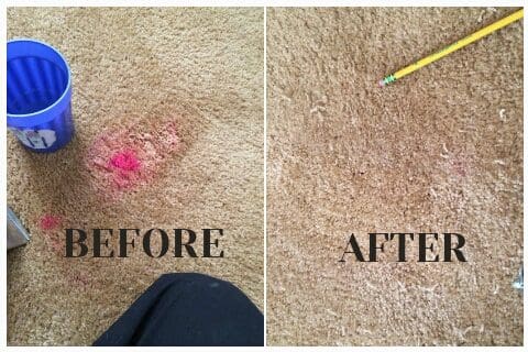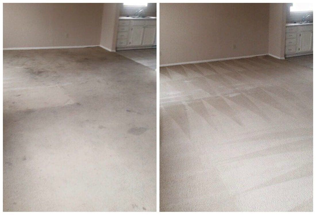 Carpets take a lot of wear, tear, rips, and stains. Sometimes the damage is repairable, and other times it has to be replaced. You would be surprised at what a carpet repair or color restoration specialist can do to save your carpet. Carpet repair is a more affordable option than replacing your entire carpet, so check with a professional to see if your damage can be repaired. Here are some before and after pictures of carpet repair, carpet stretching, color restoration, and spot removal done by the specialists at A-Team Carpet Clean in Lawton, Oklahoma. Keep scrolling for some DIY carpet repair tips!